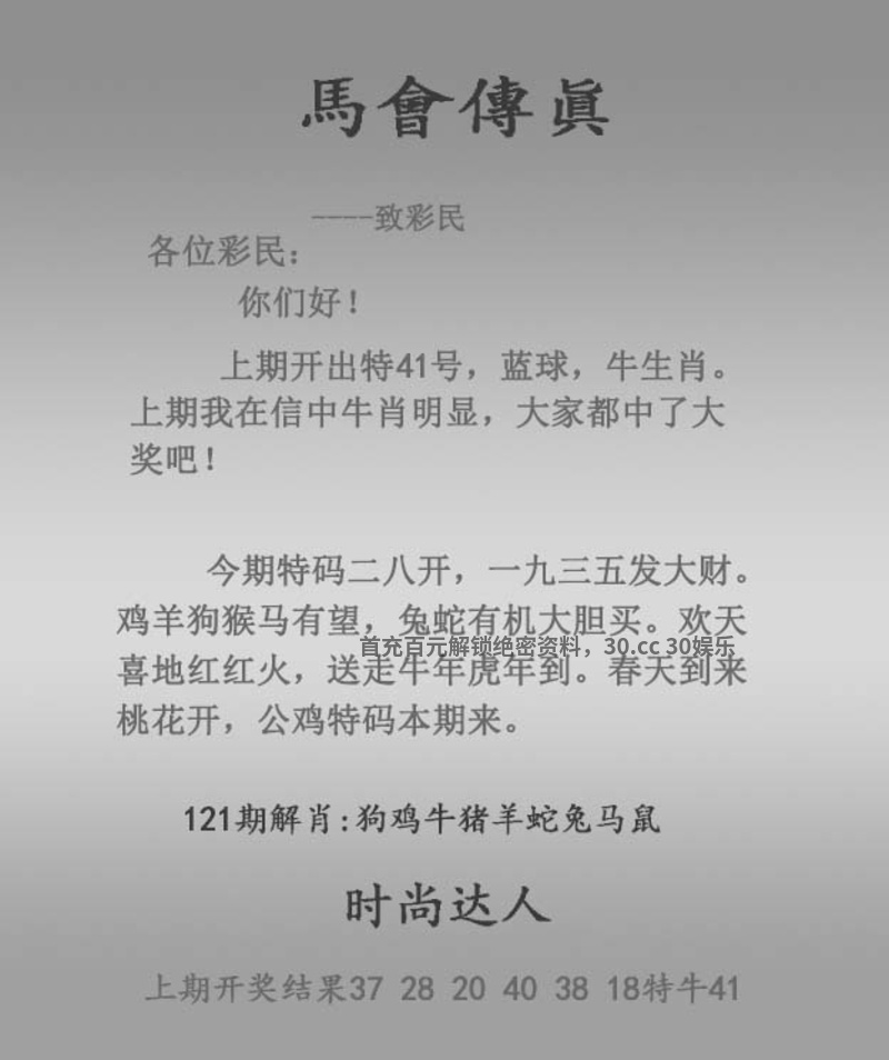 118期马会传真: 今期生肖看三五,马马虎虎来骗人 牛狗鸡马本期有,还有三二四零中 四六等于二十四,好码就从中间出 三一四二是何肖,不管三七二十一 乐在其中 解:今期牛狗鸡马本期有,解家禽生肖牛猪鸡羊狗马,四六等于二十四,解四头特码40-49 特围生肖:狗马鼠猪猴羊牛蛇兔 主特六肖:狗马鼠猪猴羊 |